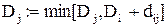 ,означающую оценку длины кратчайшего пути от узла 1.Когда оценка становиться неизменной, считается, что узел окончательно помечен. Множество окончательно помеченных узлов обозначим через P. Узел, который будет добавлен на очередном шаге к P, является ближайшим к узлу 1 среди всех узлов, ещё не вошедших в P, так как кратчайшее расстояние получается минимизацией по j