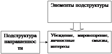 Направленность. Черты личности, входящие в эту подструктуру, не имеют непосредственно врожденных задатков, а отражают индивидуально преломленное групповое общественное сознание. Данная подструктура формируется путем воспитания и включает в себя убеждения, мировоззрения, стремления, интересы, идеалы, желания. В этих формах направленности личности проявляются и отношения, и моральные качества личности, и различные виды потребностей.