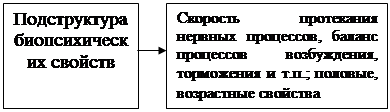 Биопсихические свойства. Это биологически обусловленная подструктура объединяет типологические свойства личности, ее половые, возрастные особенности и патологические изменения, которые в значительной степени зависят от физиологических морфологических особенностей мозга. Процесс формирования этой подструктуры осуществляется путем тренировки.