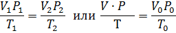 Три параметра – объем V, давление P и температура T (T=273+t) – определяют физическое состояние газа. Давление 1,013∙105Па (760 мм рт. ст.) и температура 273 К или 0оС называют нормальными условиями состояния газа, что в буквенных обозначениях этих величин указывается индексом: Po, To, to. Объем газа при н.у. – Vo.