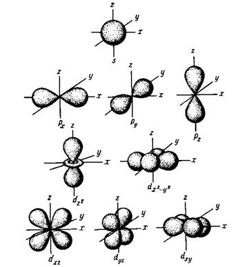 Рис. 1. Формы s-, p- и d- электронных облаков (орбиталей)