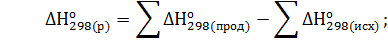 Пример 1. Расчет теплового эффекта химической реакции по теплоте образования реагирующих веществ и продуктов реакции.