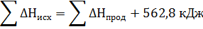 Н2S(г) + 3/2О2 = Н2О(ж) + SO2(г) + 562,8 кДж. Эта запись также представляет собой термохимическое уравнение реакции.