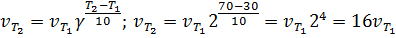 Пример 6. Вычислите, во сколько раз увеличится скорость реакции, протекающей в газовой фазе, при повышении температуры от 30 до 70 0С, если температурный коэффициент реакции равен 2.