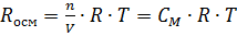 Осмотическое давление прямо пропорционально молярной концентрации раствора (СМ) и абсолютной температуре (Т). Эта зависимость дается уравнением Вант-Гоффа: