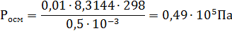 Пример 1. Вычисление осмотического давления растворов. Определить величину осмотического давления раствора, если в 500мл раствора содержится 1,8г глюкозы С4Н12О6 при 25оС.