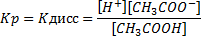 При растворении слабых электролитов в воде происходит обратимая диссоциация, например, для СН3СООН имеет место равновесие: