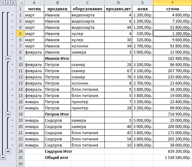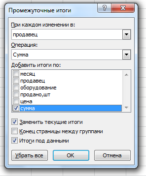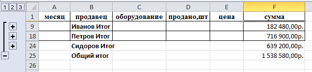 Рис. 14. Результат вычисления промежуточных итогов по Продавцам