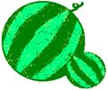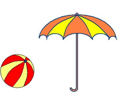 Используя инструмент Кривая и части эллипсов, нарисуй арбузы, мяч и зонт: