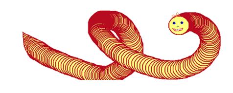 Нарисуй змею. Сначала нарисуй окружность тёмного цвета и залей её внутри светлым тоном. Затем, выдели окружность рамкой с прозрачным фоном и перетаскивай её левой кнопкой мыши при нажатой клавише Shift. Будет происходить многократное копирование объекта. Затем, нарисуй змее черты лица.