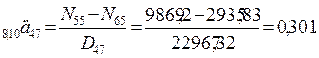 3. Рассчитать нетто-премию для страхователя в возрасте 47 лет, если по условиям договора страховщик должен выплачивать в начале каждого года по 10000 руб. в течение 10-ти лет, начиная с возраста 55 лет.