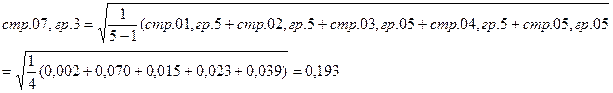 в стр. 07, гр. 3 страховщик рассчитывает оценку квадратического отклонения значений коэффициента состоявшихся убытков: