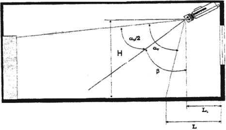 Выбор каждой конкретной ТК начинают с расчета необходимого поля зрения объектива по горизонтали (V) и вертикали (Н), а также расстояния до объекта контроля (D). По этим данным углы зрения необходимого объектива по горизонтали (a г) и вертикали (a в) определяют по формулам: