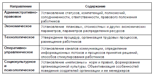 В таблице приведены основные направления, по которым осуществляется организационная формализация.