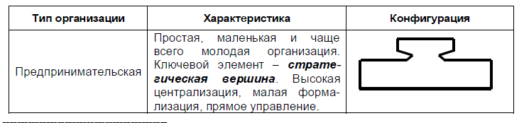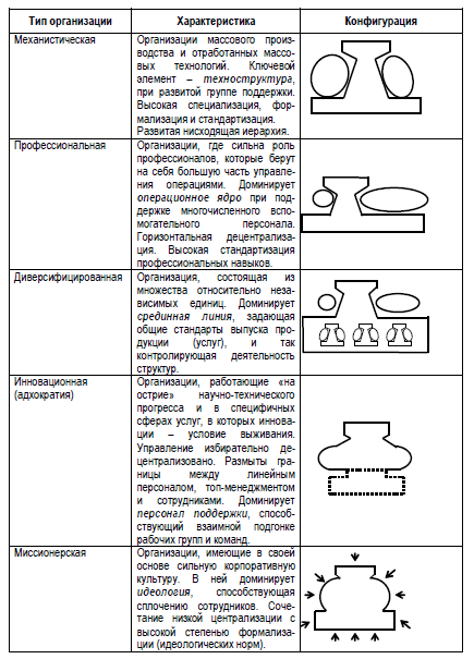 Типы организаций, которые соответствуют той или иной конфигурации, представлены в таблице.
