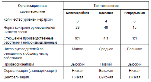 В основе классификации – степень технической сложности (механизации) производственных процессов и участия людей в нем. Эти показатели находятся в обратной зависимости, т.е. чем выше механизация, тем ниже степень участия людей. Дж. Вудворд выделила 10 разновидностей производства, использующих три типа