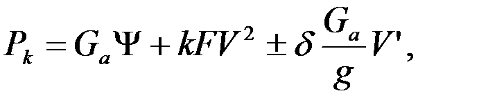 где Рк - сила тяги; Ga - вес автомобиля; Y - коэффициент суммарного сопротивления дороги (Y = ¦ + i); k - коэффициент обтекаемости; F- лобовая площадь; d - коэффициент учета вращающихся масс; g - ускорение силы тяжести; V’ - ускорение автомобиля.