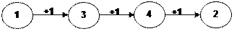 Рис. 3.23 Импульс передается от вершины 1 к вершине 2 с задержкой в 3 единицы
