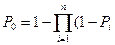 Для статистически независимых событий, при логической схеме «ИЛИ», вероятность наступления завершающего выходного события, в общем случае, вычисляется из соотношения: