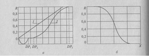 вывода из строя учитываемых здесь ресурсов и полученной ими мощностью дозы вредных факторов DP. Графики наиболее типичных таких зависимостей R(DP), иногда называемых функциями «доза- эффект» (где под R подразумевается риск, измеряемый одной из только что перечисленных вероятностей причинения конкретного ущерба), изображены на рис. 4.6.
