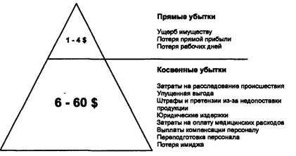 Как показывает практика, косвенные убытки часто во много раз превышают размер прямых. Это в графическом виде представлено на рис.4.7.