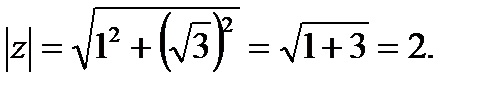 Такая форма называется тригонометрической формой записи комплексного числа. Как видно, для того, чтобы перейти от алгебраической формы записи комплексного числа к тригонометрической форме, нужно найти его модуль и один из аргументов.