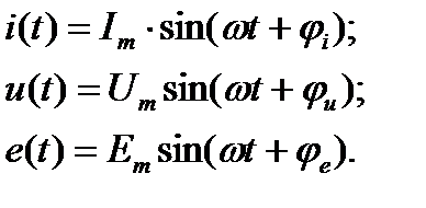 В современной технике широко используют разнообразные по форме переменные токи и напряжения: синусоидальные, прямоугольные, треугольные и др. Значение тока, напряжения, ЭДС в любой момент времени t называется мгновенным значением и обозначается малыми строчными буквами, соответственно: i = i(t); u = u(t); e = e(t).