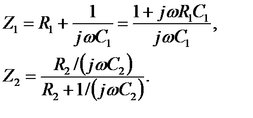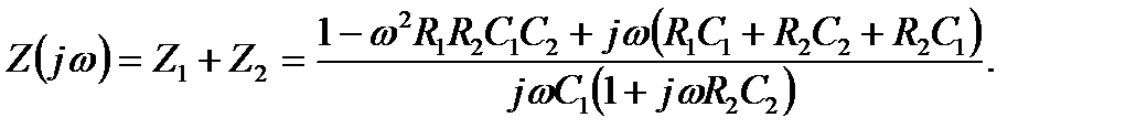 Искомая величина Z является суммой сопротивлений Z1 и Z2 двух более простых цепей, одна из которых образована последовательным, а другая параллельным включением элементов: