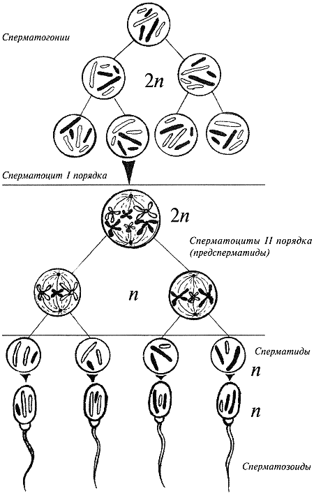 Сперматогенез — образование сперматозоидов в семеннике, продолжающееся непрерывно в течение всего периода половой зрелости кобеля. Это сложный и довольно длительный процесс: периоды размножения клеток сменяются периодами роста, созревания, формирования.