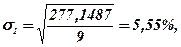 σ2 = (0,1 × 289 + 0,3 ×49 + 0,3 × 0,9 + 0,2 × 64 + 0,1 × 169)0,5 = 8,718;