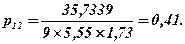 р12 = cov (R1, R2)/σ1 σ2 = 63,5 / 7,567 × 8,718 = 0,963;