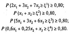 Отже, обмеження в задачі планування повинні ставитися (праві частини), виходячи не з середніх значень ресурсів, а з величин, зменшених відносно середніх пропорційно середньоквадратичним відхиленням