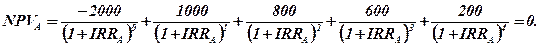 Використовуючи один із методів наближених обчислень, наприклад метод січних, одержимо IRRА ≈ 4,5%;