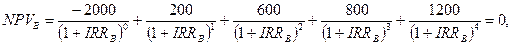 | Год (t) | Проект (А) (CFt) | Проект (В) (CFt) |