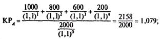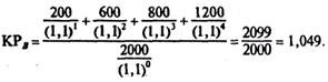 Отже, обидва розглядувані інвестиційні проекти є ефективними з точки зору показника — індексу прибутковості. Якщо є така можливість, то обидва проекти можуть бути залученими до інвестиційної програми фірми, якщо ж ці проекти один одного взаємно вилучають, то для реалізації доцільно прийняти проект А, бо КРА > КРВ.