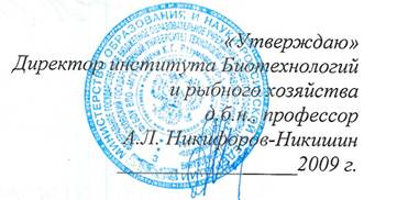 Утверждена на заседании Совета института «Биотехнологий и рыбного хозяйства» Московского государственного университета технологий и управления (Протокол № 1 от 28 сентября 2009 г.).