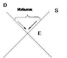 Если спрос больше предложения, на рынке имеется дефицит товаров (нижняя часть графика 8, нижние строки таблица 4). Это вынуждает покупателей соглашаться на повышение цен до тех пор, пока предложение не совпадает со спросом (точка Е).