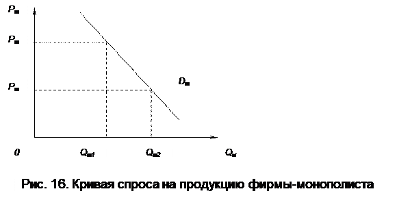 На графике (рис.16) вертикальная ось – Цена Pm, горизонтальная – объем монопольной продукции в натуральной форме Qm; Dm – кривая спроса на продукцию монополиста.