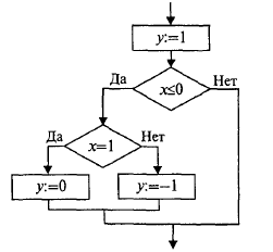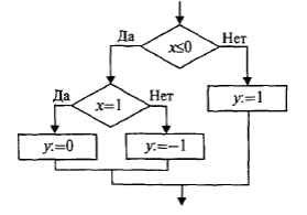 Напомним, что эту же задачу можно решить с помощью операции «условие» Теперь рассмотрим примеры программирования вложенных ветвящихся структур. Требуется вычислить функцию sign(x) — знак х, которая определена следующим образом: