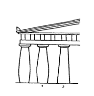 энтазис – легкая припухлость ствола колонны (примерно на 1/3 ее высоты). 1 – колонна с энтазисом; 2 – колонна без энтазиса. Создает впечатление вдавленной.