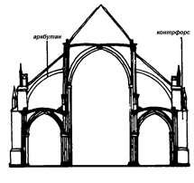 аркбутан - связующаяоткрытая полуарка, передающая распор свода на контрфорс.