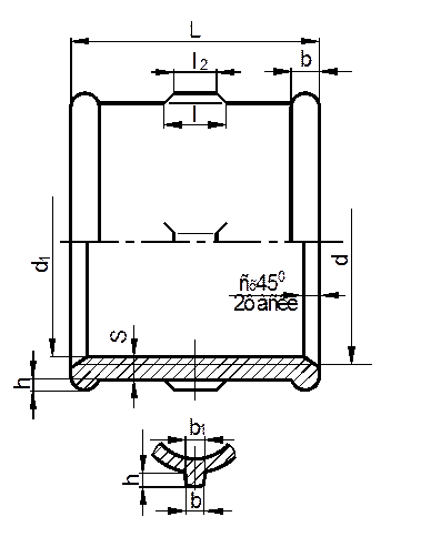 | Dу из таблицы 7, [6]; L, l, l2, d, d1,b, b1, S, h, c – из таблицы 18 | |||||||||||