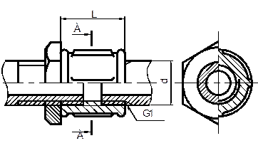 Чертежи трубных соединений выполняются в двух изображениях (видах): главное изображение представляет совмещение части вида с частью фронтального разреза, а второе изображение – сочетание половины вида слева с простым профильным разрезом.