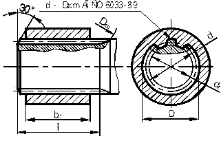 Шлицы эвольвентные | D, b1, m – из таблицы 9 [6]; z, – из ГОСТ 6033-80; l = b1 + 5 мм; m – модуль; d = mz; df = D – 2,76m Диаметр фрезы Dфр определяют по ГОСТ 9324-80. Ориентировочно Dфр принимают равным диаметру вала. |