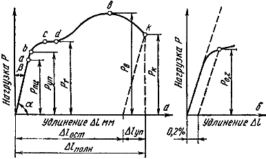 Испытания проводятся на специальных машинах, которые записывают диаграмму растяжения, выражающую зависимость удлинения образца