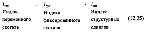 Эта задача решается с помощью индексного метода, т.е. путем построения системы взаимосвязанных индексов, в которую включаются три индекса: переменного состава, постоянного состава и структурных сдвигов.