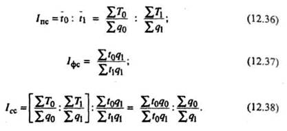 Если же отдельные элементы явления неоднородны, то непосредственное суммирование их невозможно или бессмысленно и тогда необходимо привести их к сопоставимому виду. Все товары имеют стоимость, а стоимости товаров можно суммировать. Переход от натуральных показателей к стоимостным позволяет преодолеть несуммарность натурально-вещественных элементов совокупности. Но изменение стоимости товаров обусловлено совместным изменением двух факторов — количества товаров и цен на них, а нам необходимо определить изменение каждого из этих факторов в отдельности. Для изучения изменения одного фактора необходимо абстрагироваться от изменения второго, взаимосвязанного с ним фактора и построить общий индекс в агрегатной форме.