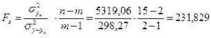с уровнем значимости 0,01 или 0,05 и числом степеней свободы (m-1), (n-m).