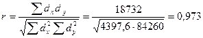 В случае отсутствия связи r = 0. При прямой связи коэффициент r - положительная правильная дробь, при обратной – отрицательная.