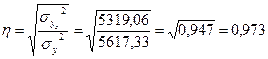 - остаточная дисперсия, характеризующая вариацию результативного признака под влиянием прочих, неучтенных факторов;